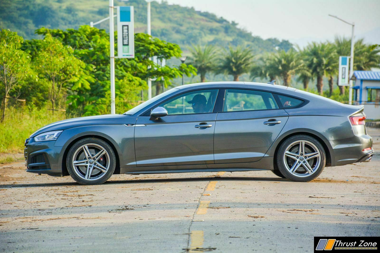The styling of this fastback car is impressive. The swooping roofline, the well-integrated boot, the sleek and muscular bonnet with power lines, the low stance, which is more pronounced than the A5 makes this car set apart from its siblings and rivals. The test car in grey colour with large 18-inch wheels which are very Italian alike, look almost perfect on this car.