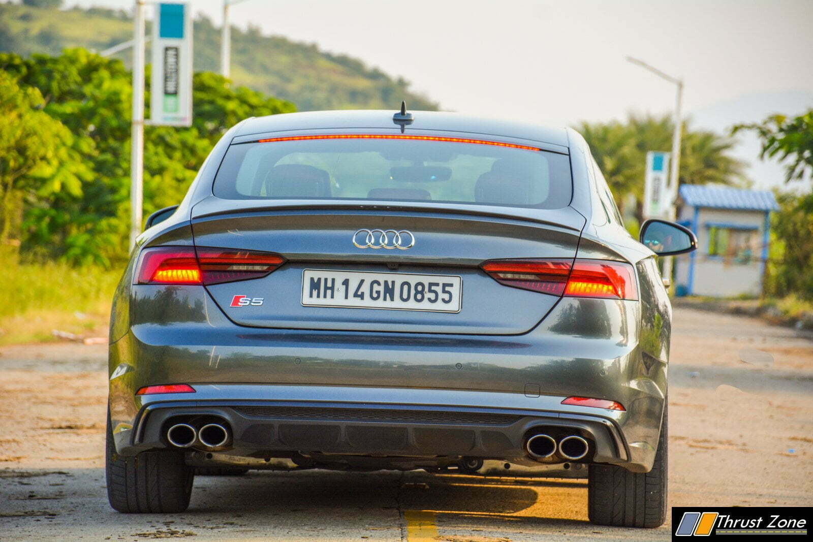 Well controlled body roll, good grip from tyres and good amount physical limit of grip while pushing the car around bends and sweepers make the Audi S5 fun to push around. The brakes were good but the pedal bite can be a bit better. The steering also has more feedback than usual Audi’s but deserves more for a performance car. Steering is light and precise though for city duties and it does get heavy at highway speeds.