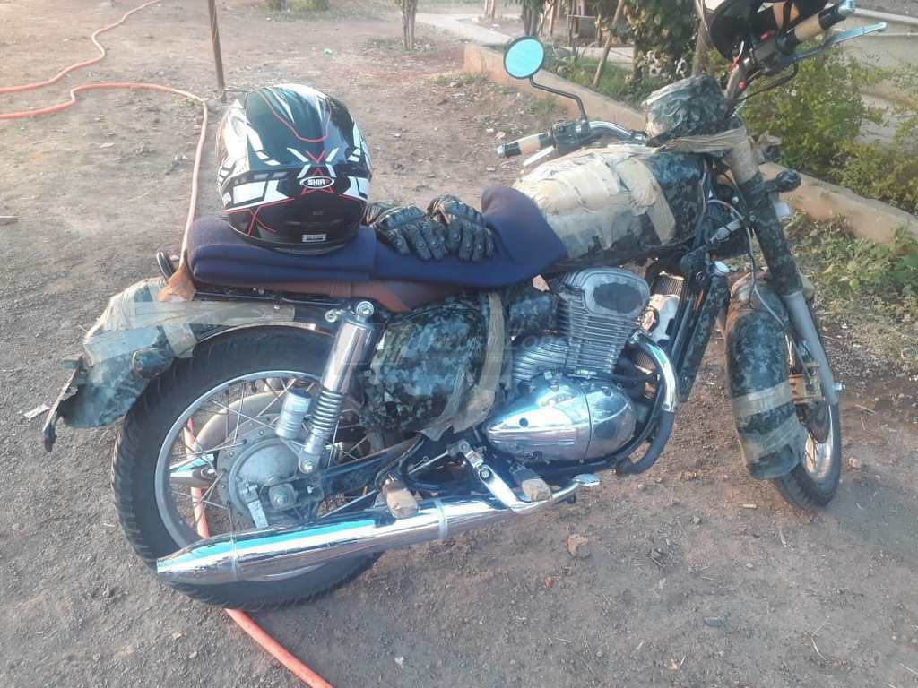 The front headlight cowl will be the highlight of this bike and will remind of the old Jawa. The front suspension too is covered entirely and mimics the old design. There are spoke wheels which look like 18-inch units with MRF tyres. The side panel like old school bikes has been fixed on this bike which accentuates the side profile design of the bike. The tail-lamp is not visible by much.