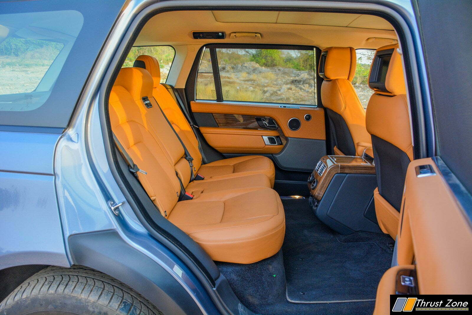 Features list is quite enormous as well. Ambient lighting, 360 degree camera, front and rear parking sensors, full roof panoramic sunroof, electric and heated ORVM and electric IRVM, rotary dial for the gear shifter, auto park, navigation, terrain response 2, three driving modes, keyless go, start-stop button, auto start-stop, LCD screen speedometer dials, touch sensitive steering wheel controls, four zone climate control, cruise control, heated steering, voice commands,R soft close doors, electric parking brake, fully adaptive LED matrix/laser Lights. There is ventilated, memory, massage, electric seats, electric sunblinds and remote control for rear seat entertainment. You can control the sun blinds, windows, sunroof shade of both sides at the rear through a single touch screen and window button on offer.