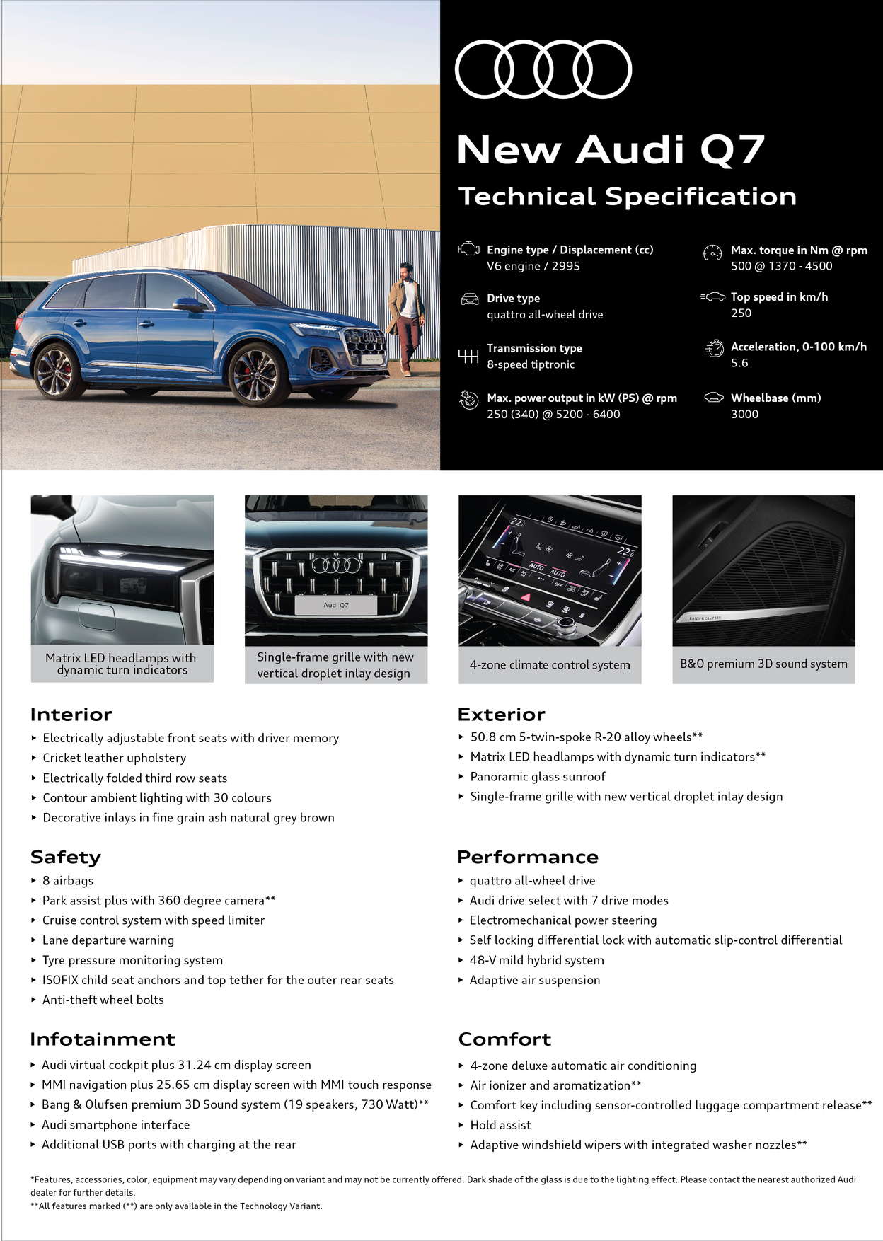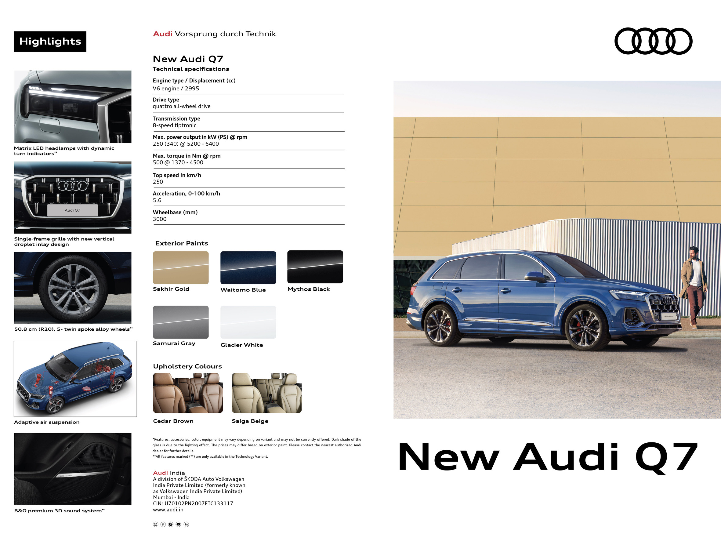 Audi today launched the new Audi Q7 in India. The new Audi Q7 represents the perfect fusion of dynamic sportiness and refined elegance, where every detail embodies sophistication and power. With its striking design updates and cutting-edge technology, the new Audi Q7 sets a new benchmark in the luxury SUV segment. Audi have sold over 10,000 Audi Q7’s in India. Audi launches the SUV quite early after its internationally debut this time around. Last time, due to covid, the brand delayed its India entry by two years. Cheaper than the BMW X7 and Mercedes GLS, the Q7 should find more garages.
