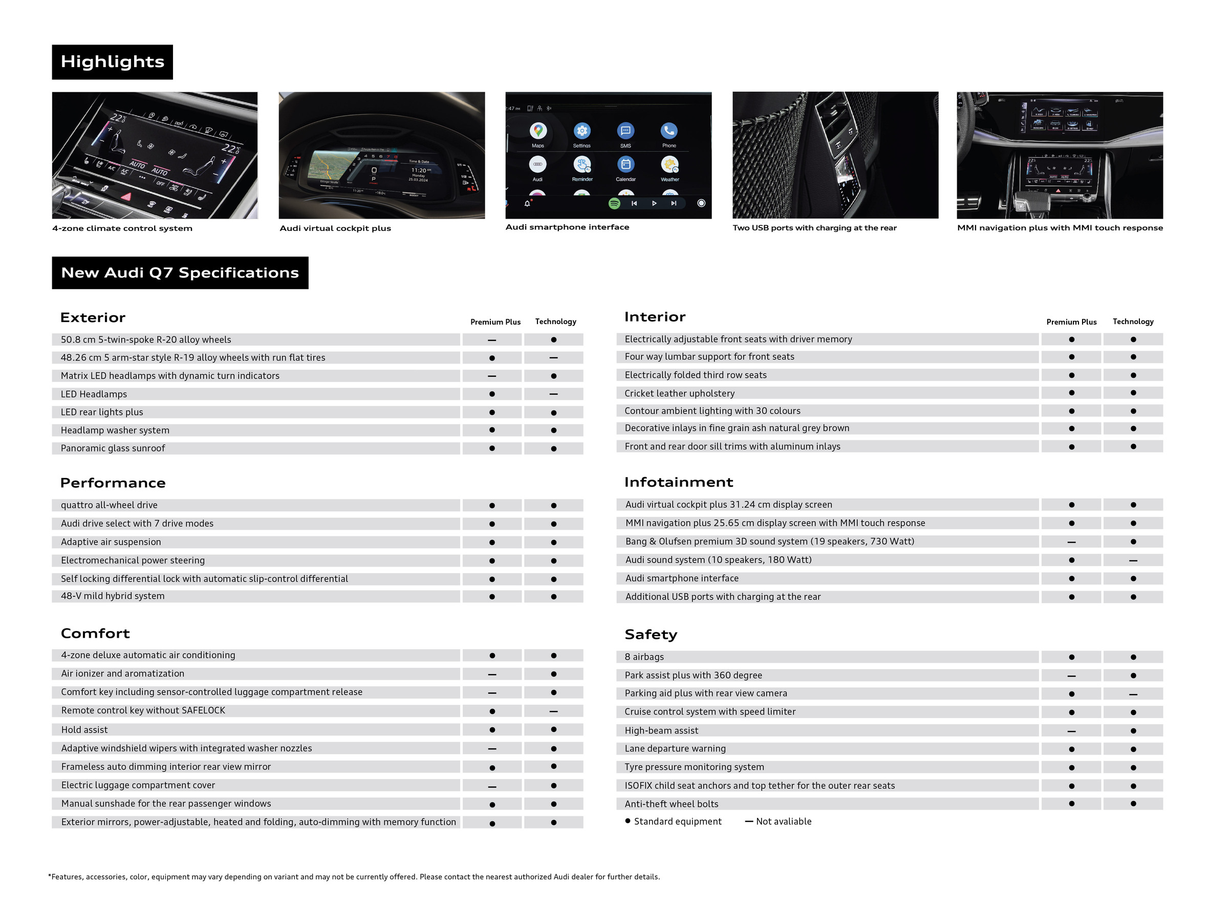 · Equipped with adaptive air suspension and Audi drive select with 7 driving modes, including an off-road mode, for a versatile driving experience.