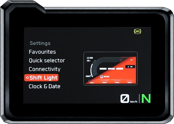 Riders can customize their shift RPM and limit RPM using the left handlebar-mounted menu switch. After setting, the 5-inch colour TFT display transforms between a dark-themed and an orange-themed display. This adds to the overall riding experience.