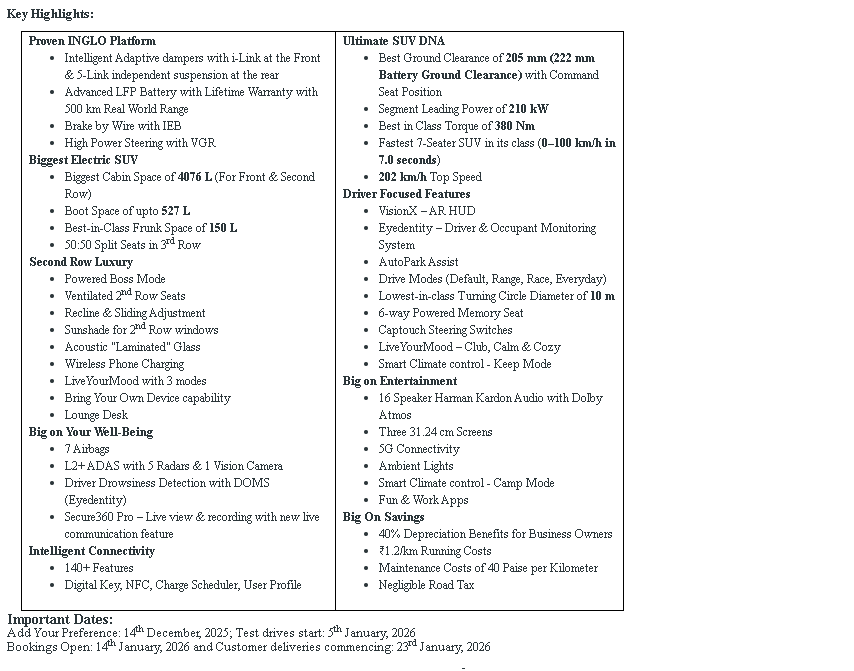 Total 6 variants with the fully loaded Pack Three Above 79 kWh priced at Ex showroom ₹ 29.45 Lakh