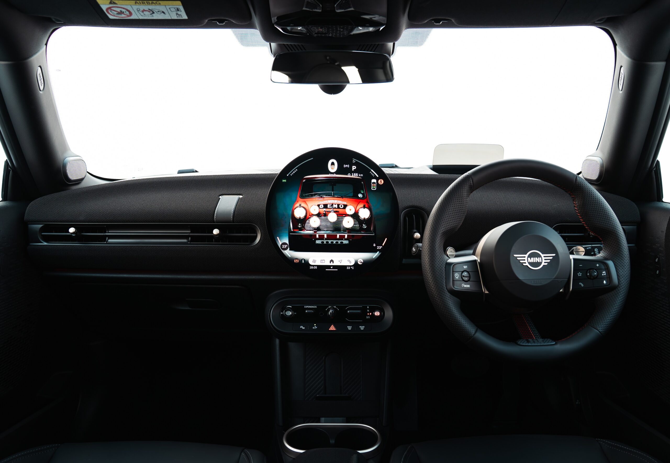 In homage to the legendary motorsports colors of the 1960s, the new MINI Cooper S Victory Edition impresses in an exclusive Chili Red exterior paintwork, which is accentuated by a white trim stripe extending from bonnet to the roof and rear, enhancing the vehicle´s sportiness even further. As an exclusive trademark of the edition, a white “52” graphic adorns both sides of the vehicle – a reference to the number of the original car displayed from 1965.