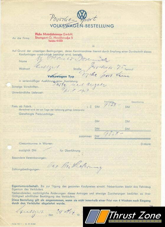 The Domnick Foundation, which manages his estate today, still has the original order form from Ottomar Domnick with the commission number 5001. The order was processed by the Volkswagen Hahn dealership as there was no Porsche sales network in Germany back then. “Volkswagen” had been crossed out by hand and replaced with “Porsche-Sport” on the order form. To this day, Ottomar Domnick’s Porsche 356 represents the beginning of Porsche sales in Germany, and it also directly stands for the start of personal factory collections in Zuffenhausen.