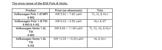 Further Mr. Knapp commented, “In accordance to the Indian government norms, Volkswagen India announces a 100% transformation to a BS6 product portfolio. The carlines continue to be accessible for the Indian customers with no major price difference across the Polo & Vento carlines.”