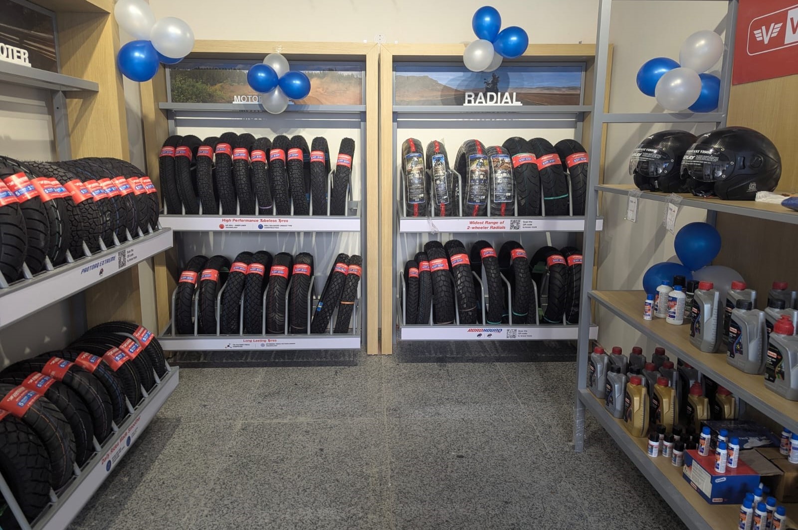 The store houses entire range of two-wheeler tyres available in varied patterns and sizes and tubes, catering to a wide variety of scooters, commuter bikes, mid-range performance bikes, adventure touring bikes and superbikes. It is also equipped to offer services such as tyre fitment, tyre care & puncture repair, air pressure checks, lubricant and engine oil changes. In addition, the store will handle warranty related queries.