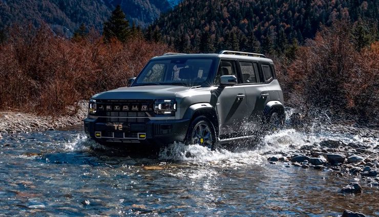 The T2 showcases a familiar upright, boxy SUV silhouette, reminiscent of the Land Rover Defender. Yet, rather than a traditional ladder-frame chassis, it utilizes a modern monocoque platform. The international version boasts short overhangs, a tall stance, and well-defined proportions designed to create a commanding presence on the road. Globally, the Jetour T2 is available in both a 5-seater and a more spacious 7-seater variant. The 5-seater measures approximately 4.7 meters in length and 2 meters in width, positioning it larger than many midsize SUVs like the Hyundai Creta and Kia Seltos, and even surpassing the Tata Safari.