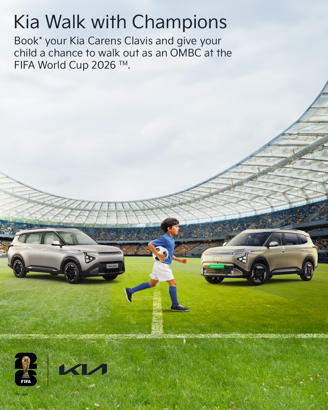 The selected child will walk onto the field in front of thousands of fans, alongside global football icons — accompanied by one parent or guardian. Kia will manage end-to-end travel, visa, and hospitality arrangements, ensuring a seamless and unforgettable experience.