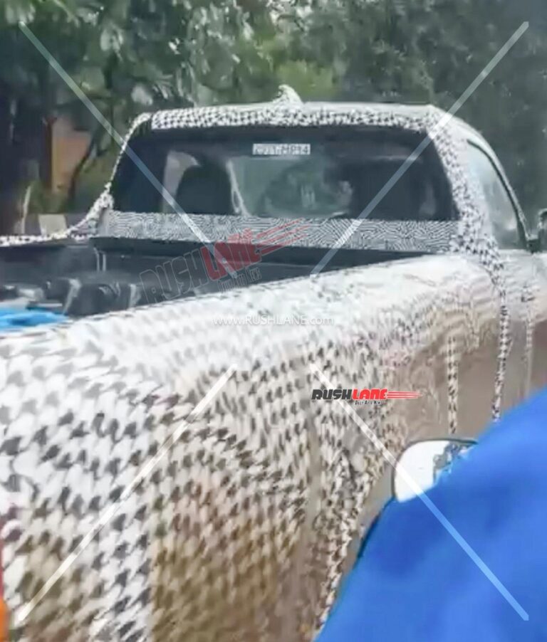 It does look different from the Scorpio N, right down to the front door. The only difference is that the tail and rear wheels have been moved, so the longer wheelbase is needed to accommodate the cargo bed. The rear cargo area has a grab handle in the middle and temporary tail-lights on either side, a look taken from the first generation Scorpio. The production version has a slightly larger shelf, although it can be reduced. Finally, the test mule is seen riding on the same set of alloys as the Scorpio N.