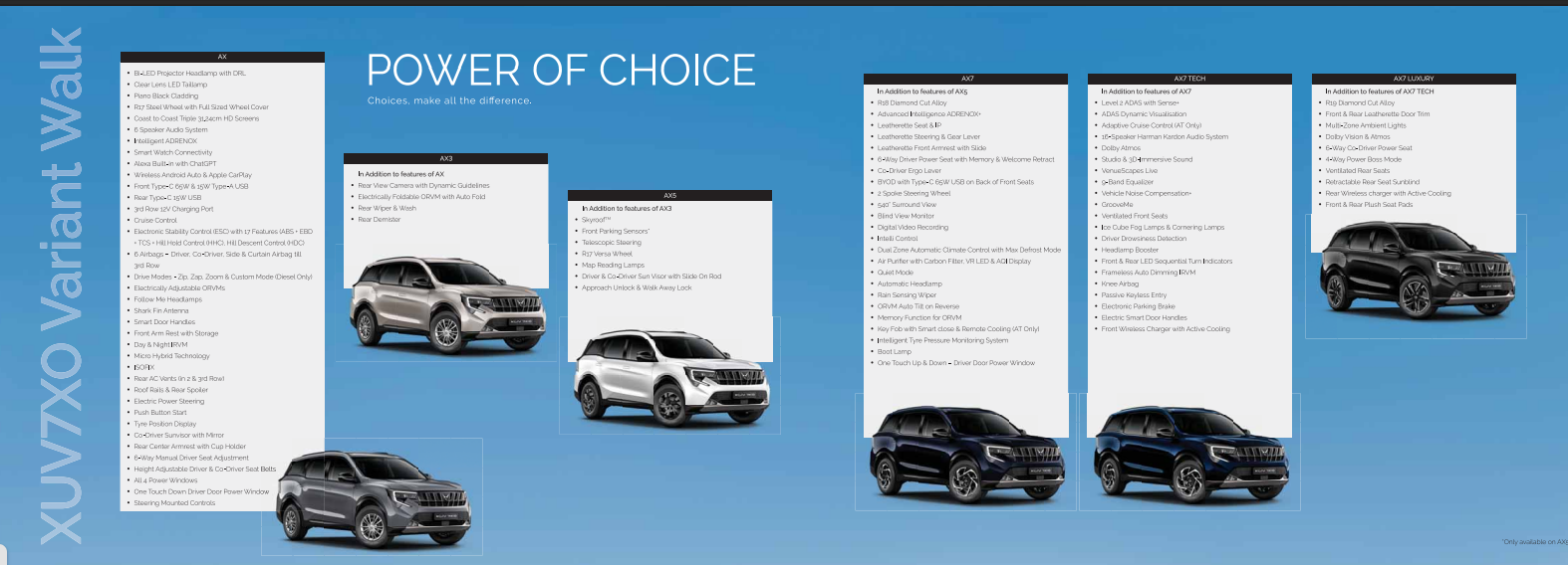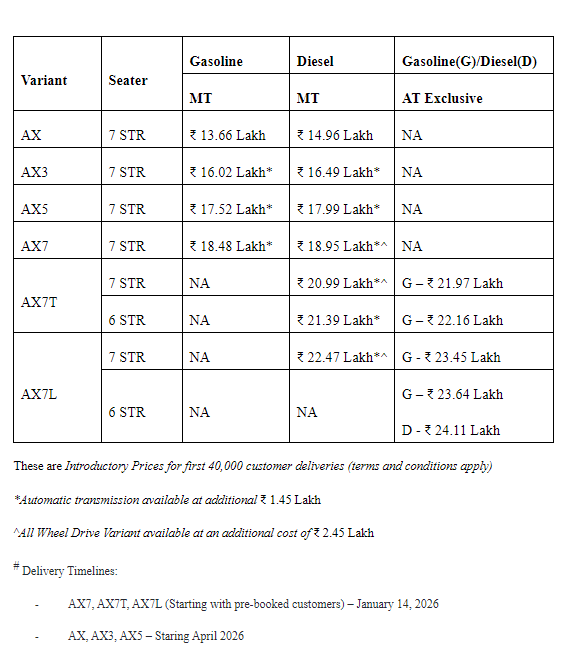 Mahindra has consistently worked towards democratising technology, and the XUV 7XO further exemplifies this commitment by offering advanced features starting from the base variant. The AX variant, featuring Coast-to-Coast 31.24 cm Triple HD screens, Intelligent ADRENOX, Wireless Android Auto & Apple CarPlay, Alexa Built-in with ChatGPT, Cruise Control, Push Button Start/Stop, and 75 safety features—all as standard—makes cutting-edge technology and premium features more accessible than ever at a price increase of RS 2.66 lakhs over the last five years when the XUV 700 was launched at Rs. 11.99 lakhs.