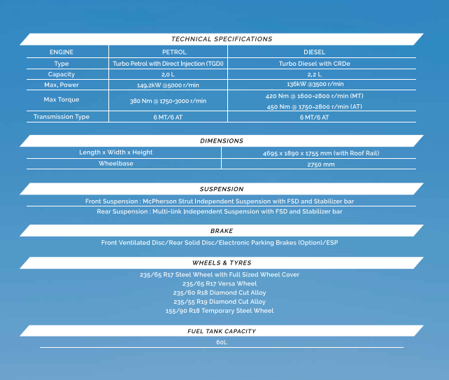 · Over 120 safety features & 75 Safety Features as Standard (6-Airbags, ESP with EBD, Hill Descent Control etc.)